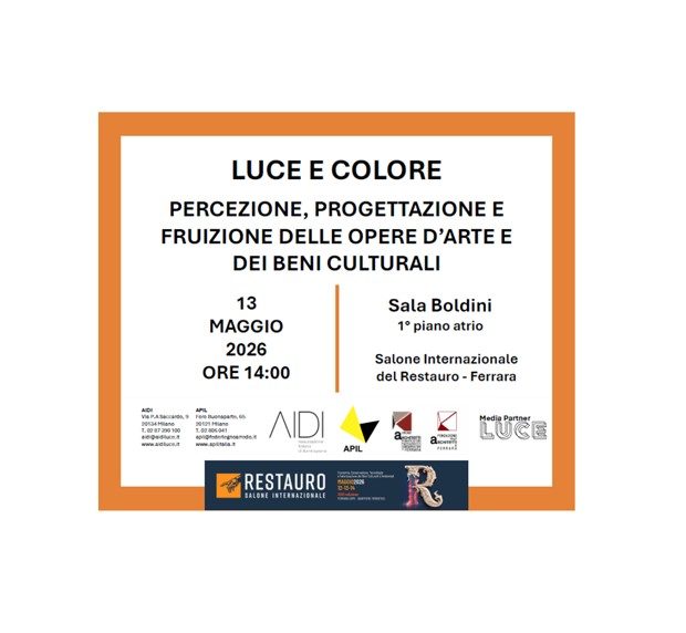 Prosegue la collaborazione tra AIDI (Associazione Italiana di Illuminazione) e APIL (Associazione Professionisti dell’Illuminazione). In occasione della XXXI Edizione del Salone Internazionale del Restauro di Ferrara, le due associazioni presentano la tavola rotonda: “LUCE E COLORE. Percezione, progettazione e fruizione delle Opere d’arte e dei Beni architettonici”.